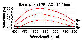 When a narrow wavelength radiation is incident on SPR coating, part of the radiation is reflected and the other part is transmitted. This coating always show a high reflectivity for S-polarization radiation and high transmission for P-polarization radiation. The main application of this coating is for a beamsplitter with 45¡ã angle of incidence. It is the most commonly used, low-cost anti-reflection coating, and widely used in Lens & Prism, Input & output surface.